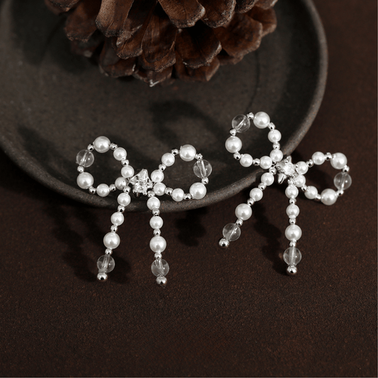 Boucles d'oreilles en argent sterling avec nœud papillon et perles