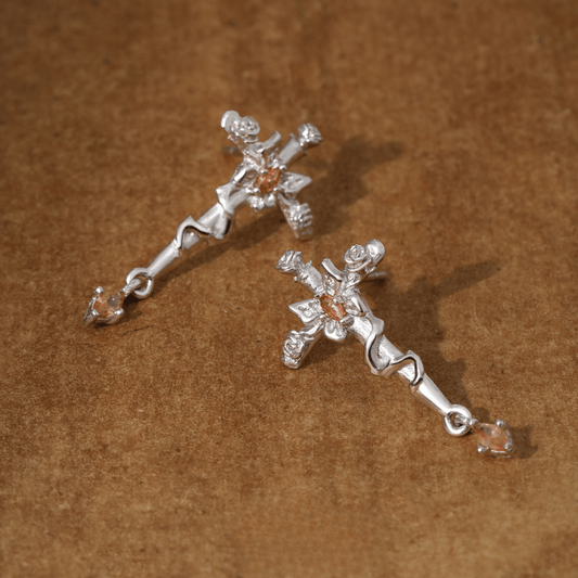 Boucles d'oreilles à tige en forme de croix et de papillon rose