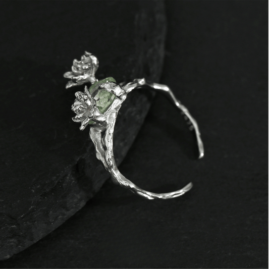 Bague Jasmin – Fleur de Glace en Zirconium Vert